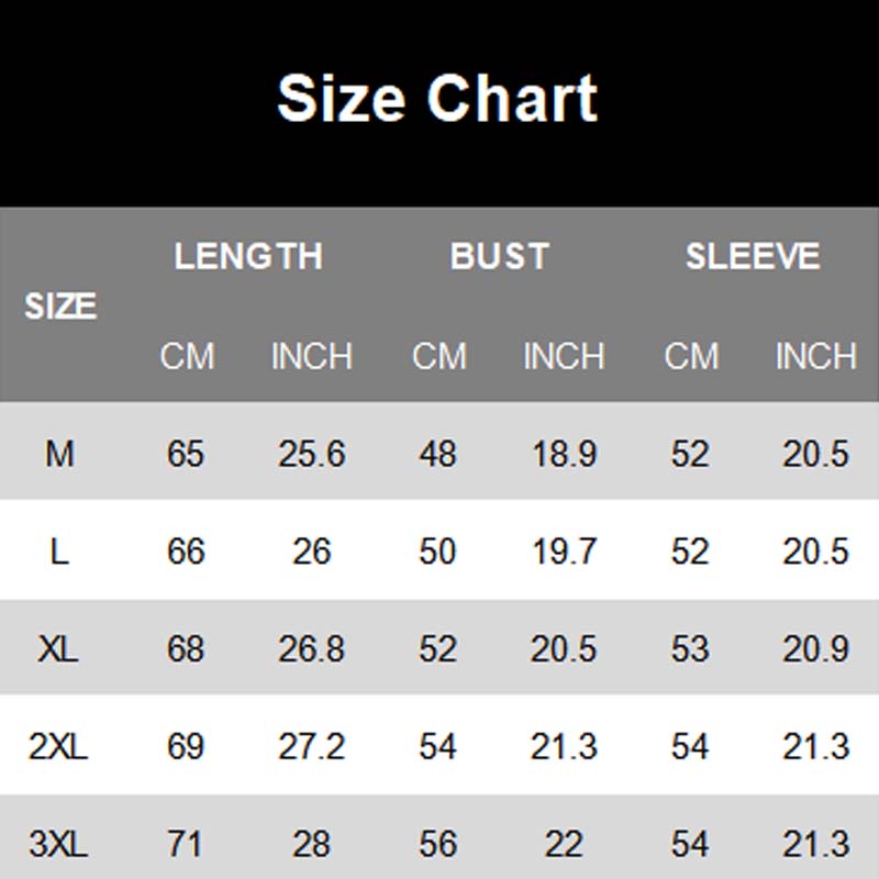 Dimensions: Available in M, L, XL