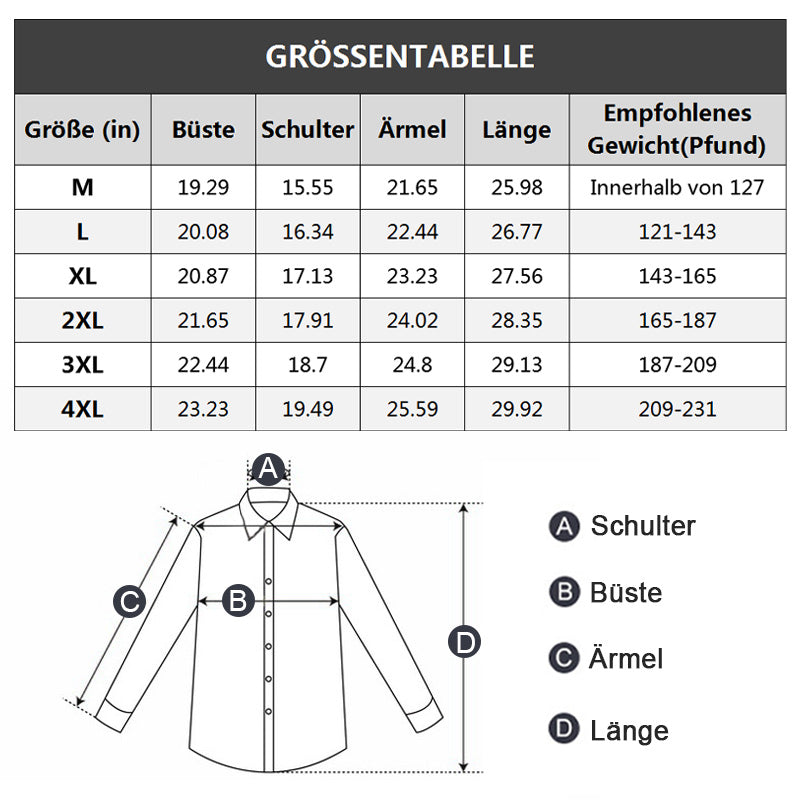Size | Length | Chest | Shoulder | Sleeve | recommended weight(lb) | ||||